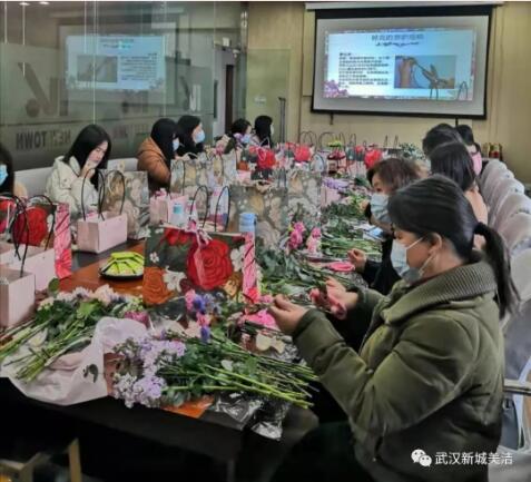 隨后,女同胞們在花藝老師的指導(dǎo)下發(fā)揮創(chuàng)造力,施展插花技能,結(jié)合不同的花朵色彩,一步步制作,隨著時間的流逝,一件件春意盎然、清新淡雅的插花作品隨即盛開在女同胞們的手中。